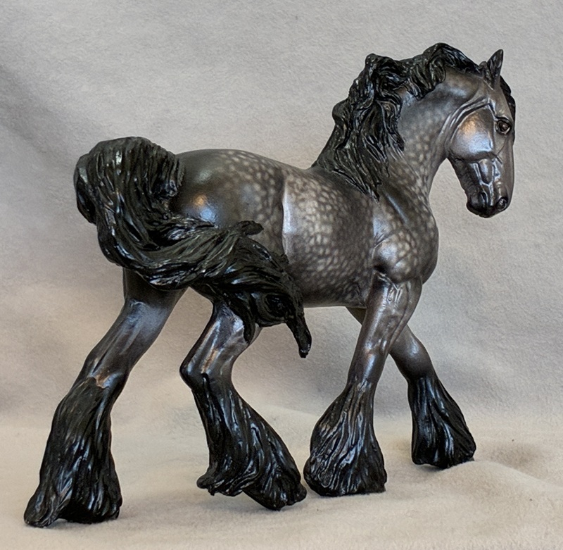 $255.00Custom Painted Resin “Mini Ravishing Ronald” Cantering Draft Horse w/added leg feathers, its a mare.