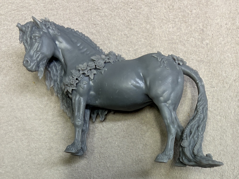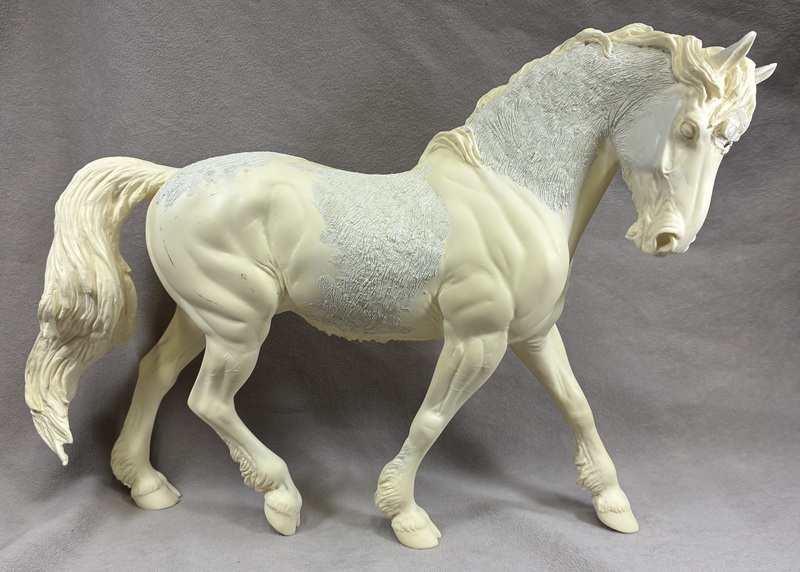 $165.00This is an unpainted, unprepped Resin Unicorn that has had an epoxy hair texture added in places and the horn is missing. This model is ready for you to complete the customizing and paint.