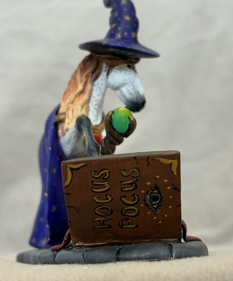 This handsome fellow was created by Jami Bloxham. The Horse Sorcerer is busy crafting a spell from his “Hocus Pocus” book. Super detailed and sure to enlighten you!