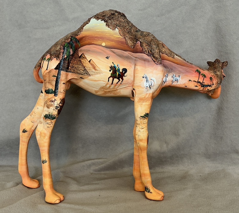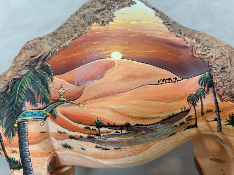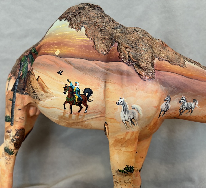 Color: Highly Detailed Arabian Desert Mural on all sides. This piece has a matching calf named Darius also up for sale.